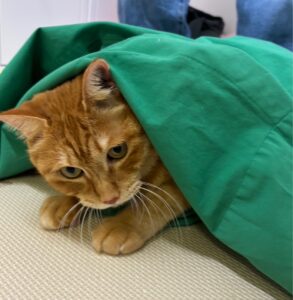 ベッドや毛布、服の上に座るのが好きな大ちゃん。