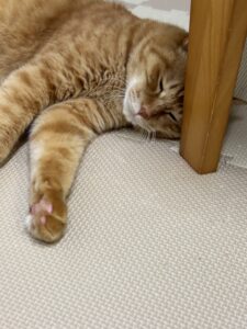 スタッフの横ですやすやお昼寝するだいちゃん。